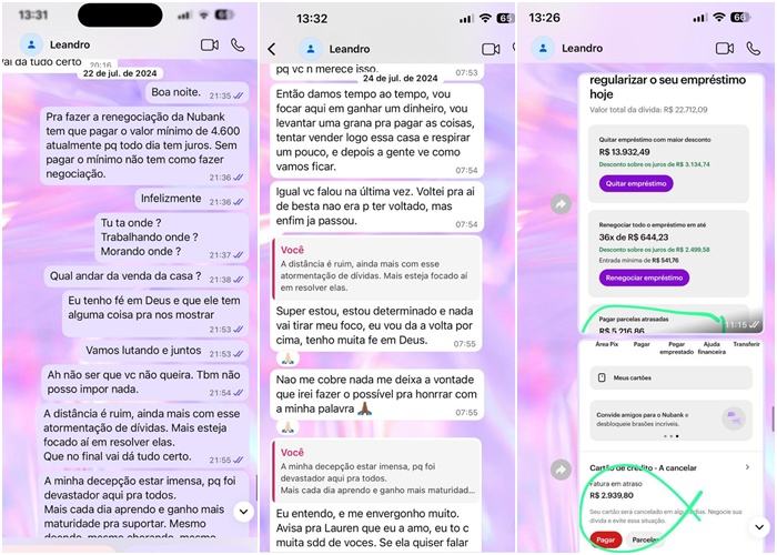 Ainda de acordo com o relato, após levantar suspeitas e questioná-lo, Leandro passou a apresentar desculpas recorrentes até desaparecer, sem deixar qualquer rastro.